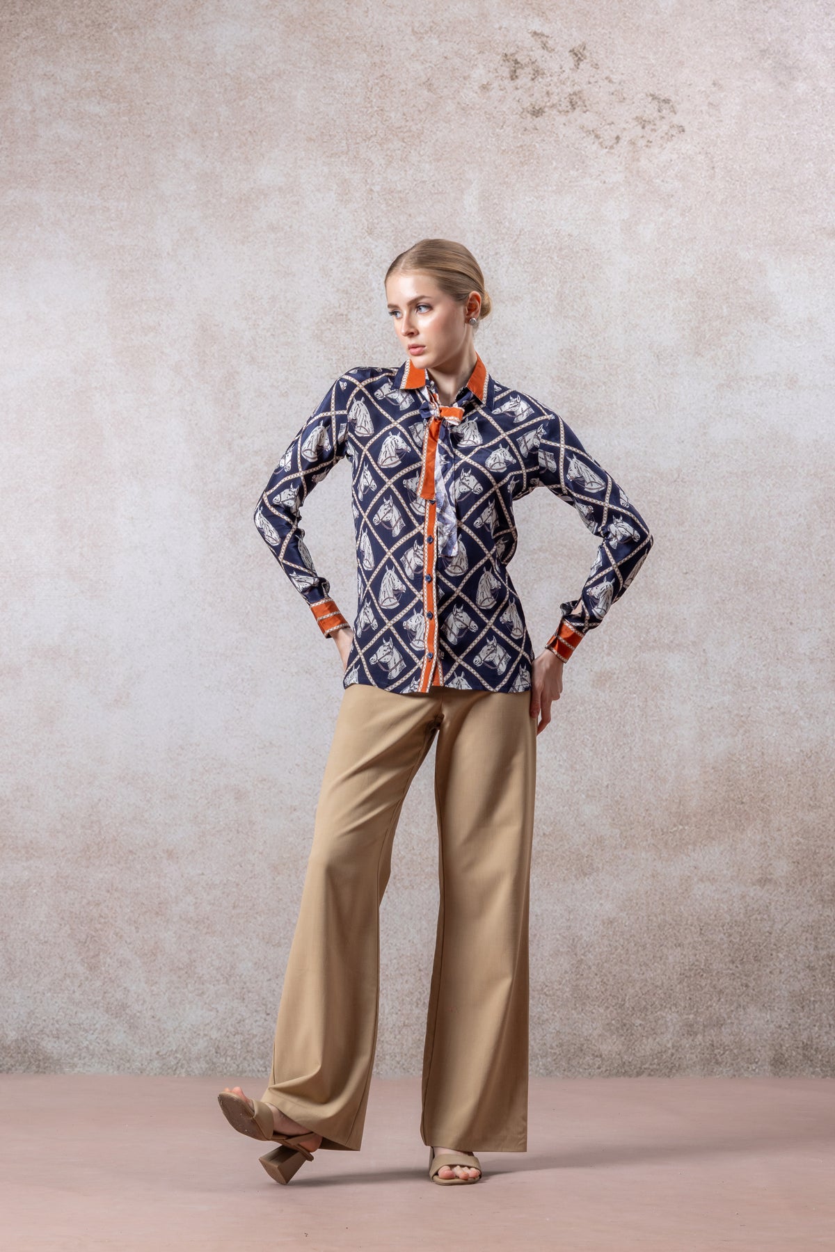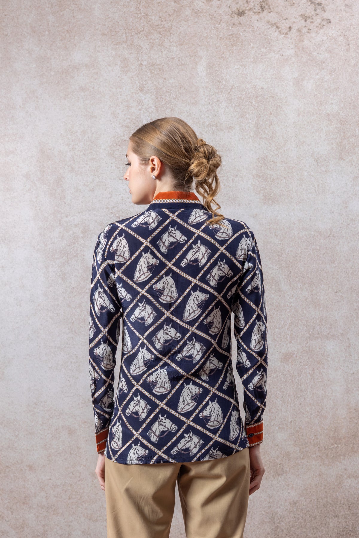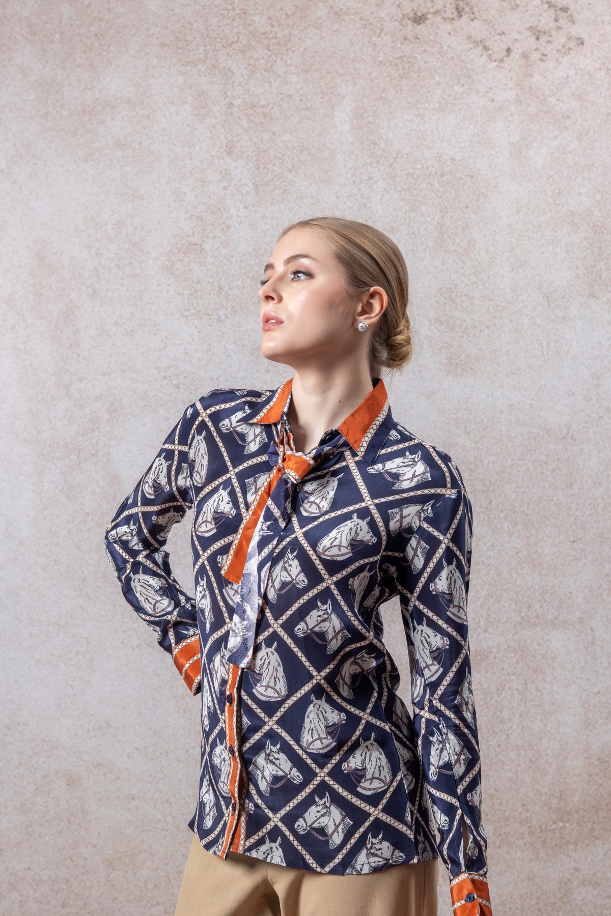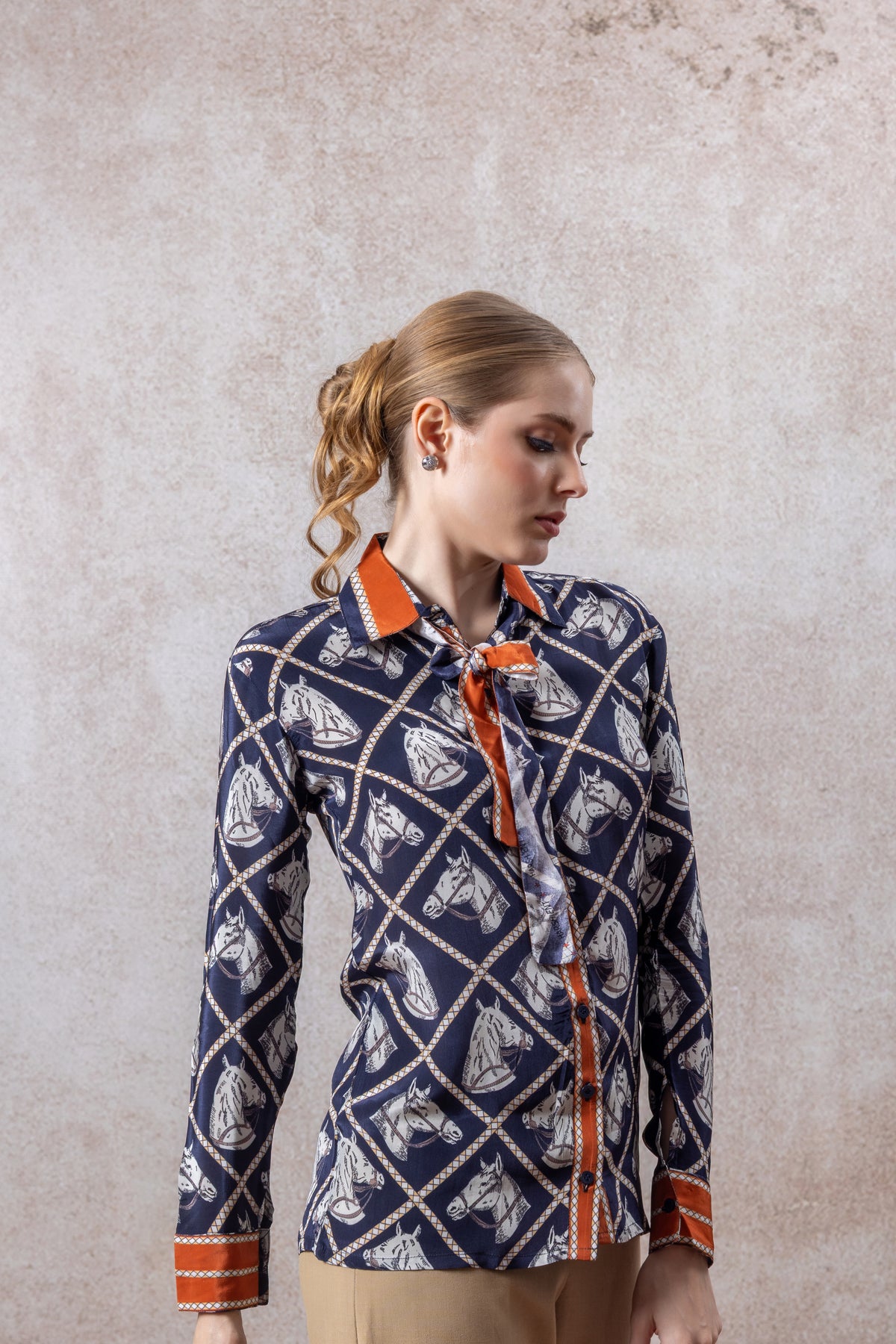 Elevate your everyday style with this Navy Horse-Motif Printed Shirt — a perfect blend of sophistication and bold design. Featuring an equestrian-inspired print arranged in a classic diamond layout, this shirt adds character without overwhelming your look.