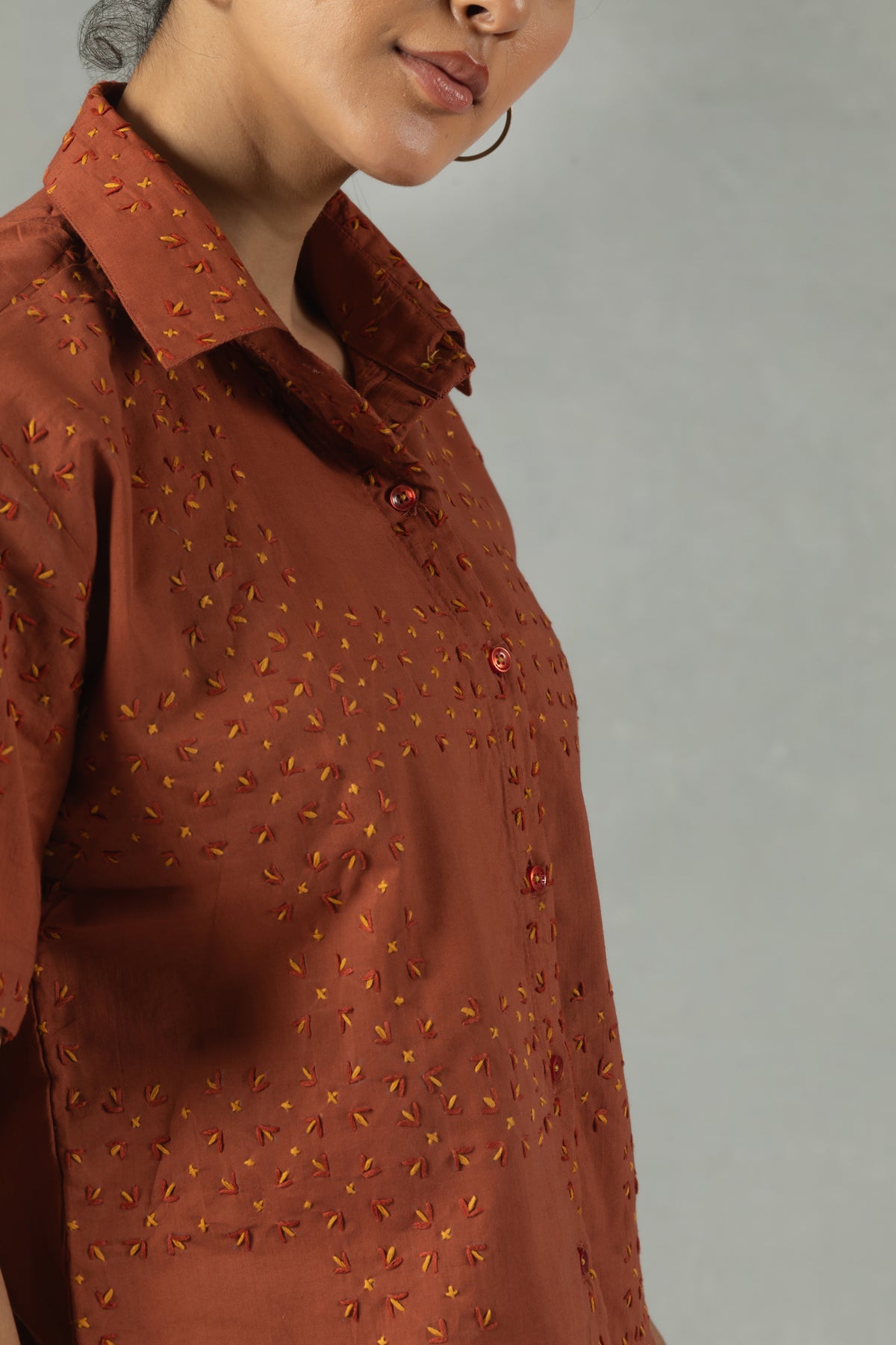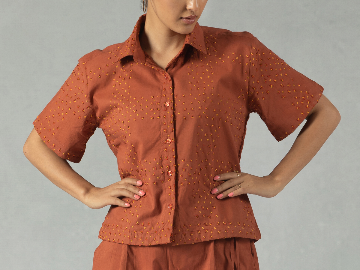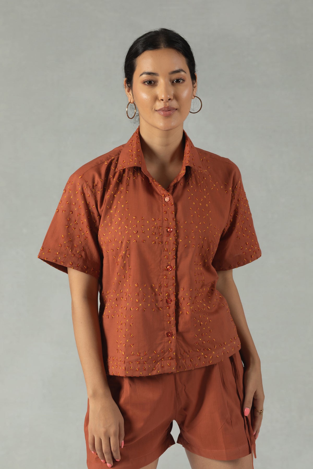 Elevate your casuals with this brown solid co-ord set in soft 100% pure cotton. The half-sleeve top and matching shorts promise easy movement and all-day comfort. Ideal for travel, lounging, or coffee dates, this fuss-free set retains its softness with simple hand washing.