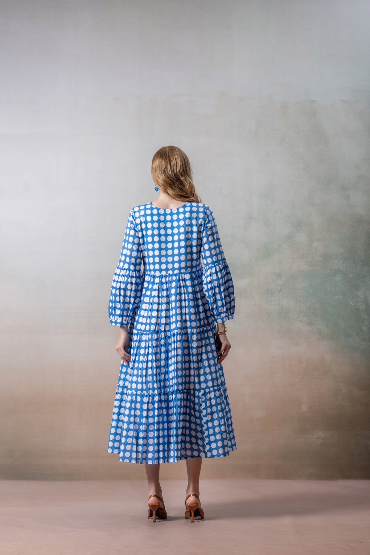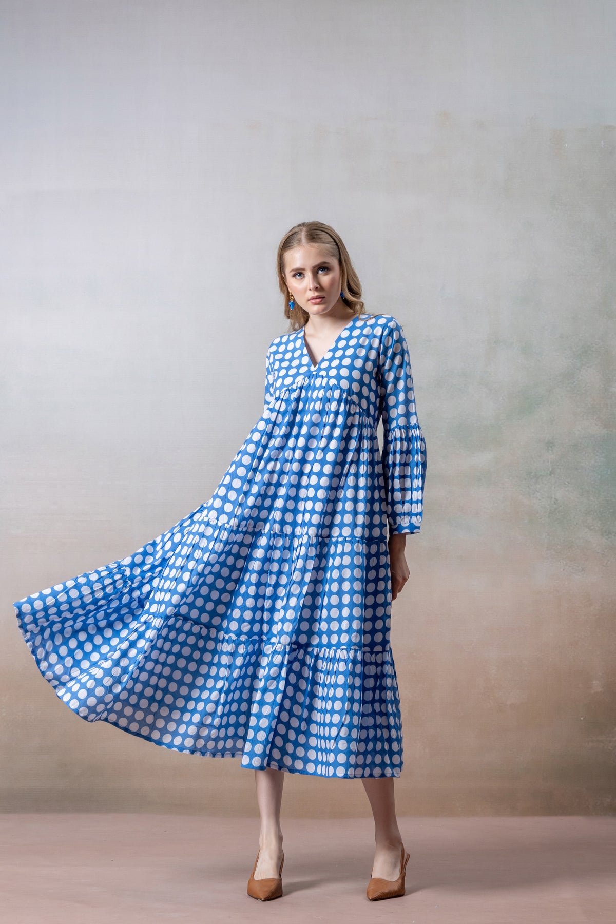 Step into effortless style with this breezy blue polka dot maxi dress from our Sestra Collection. Crafted from lightweight, breathable fabric, this flowy dress features a playful polka print that adds a refreshing charm to your everyday or vacation wardrobe.