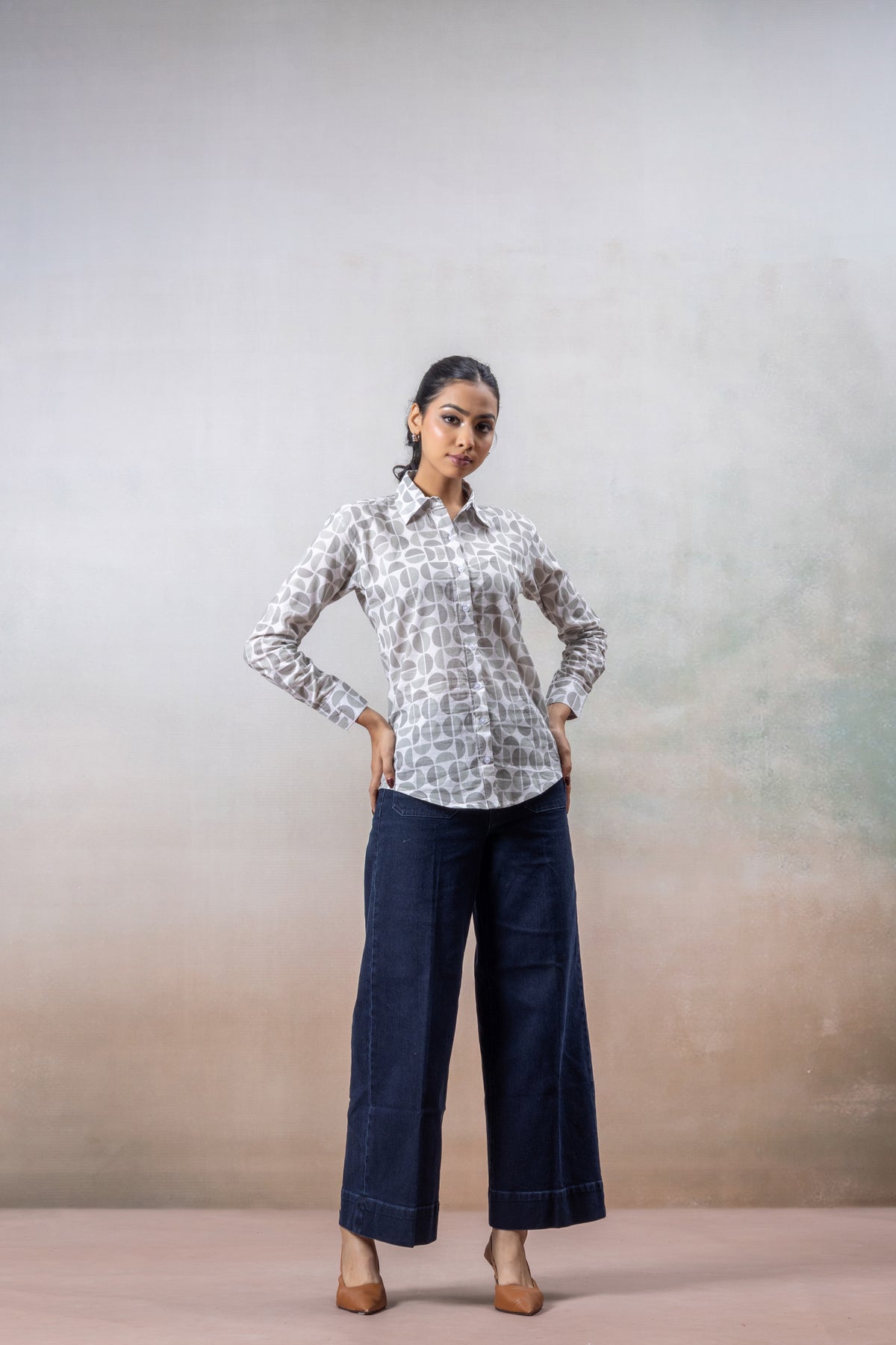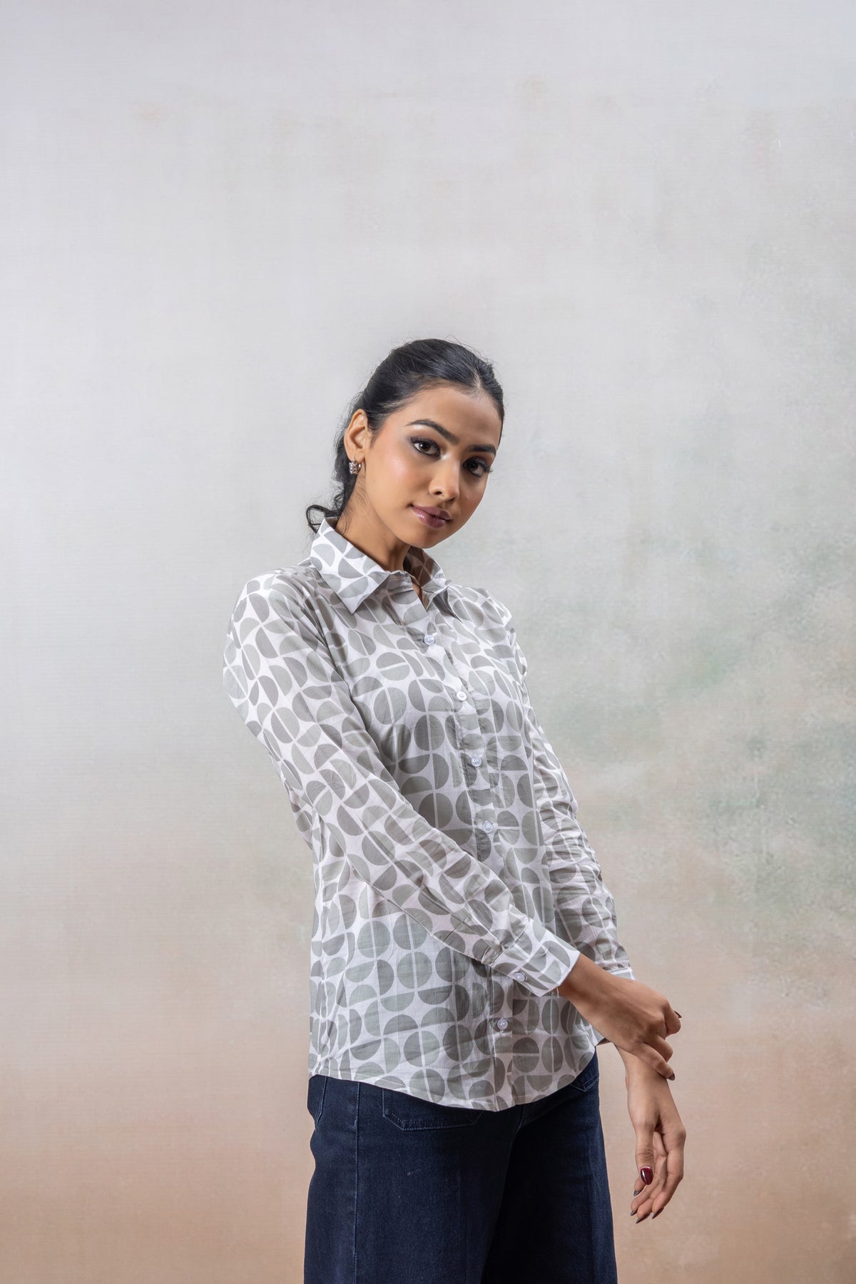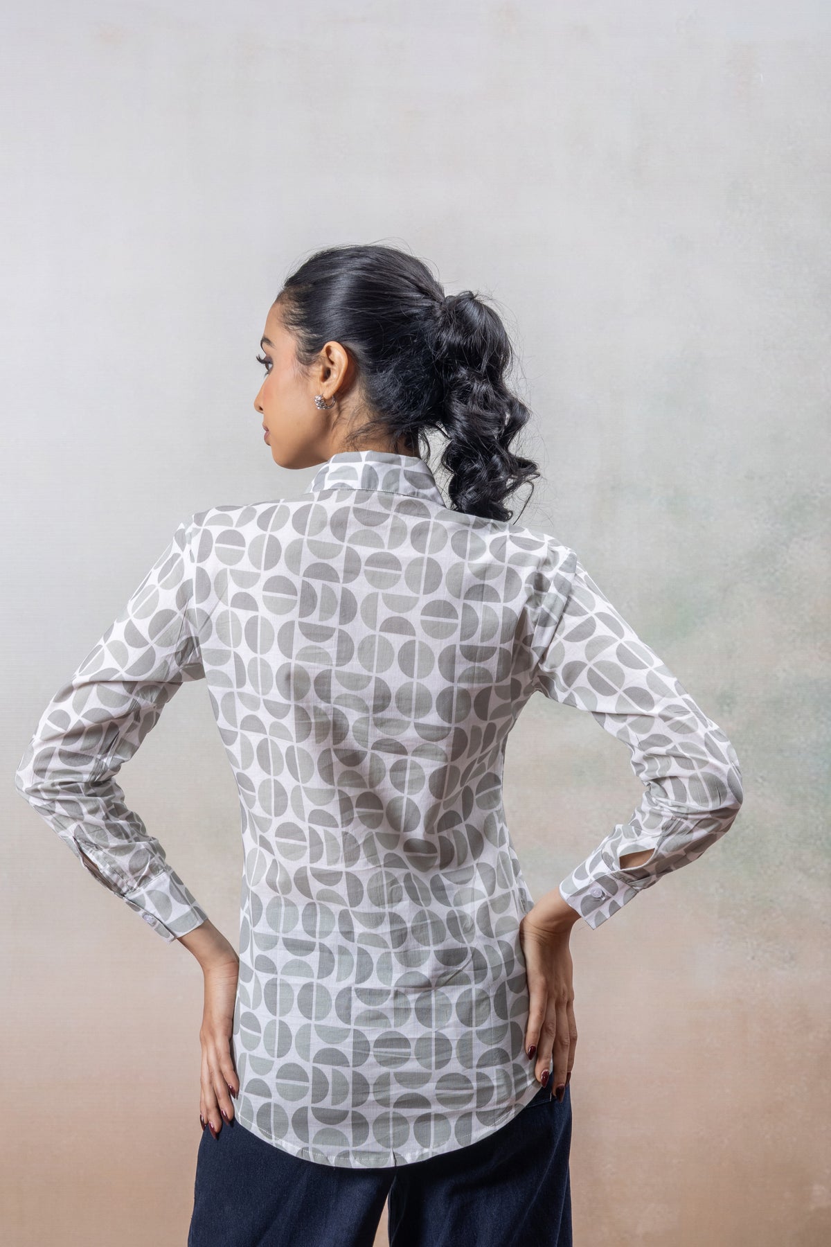 Grey Geometric Print Cotton Shirt