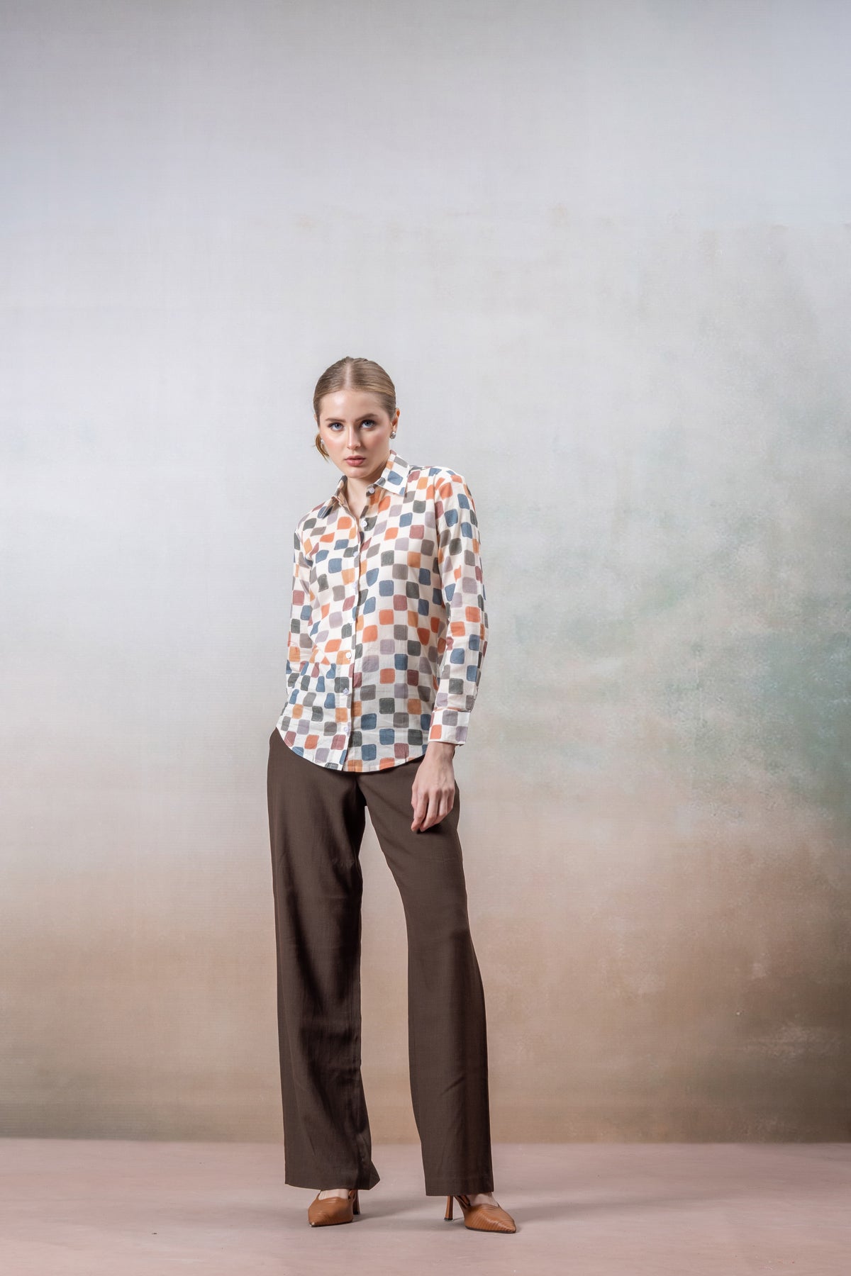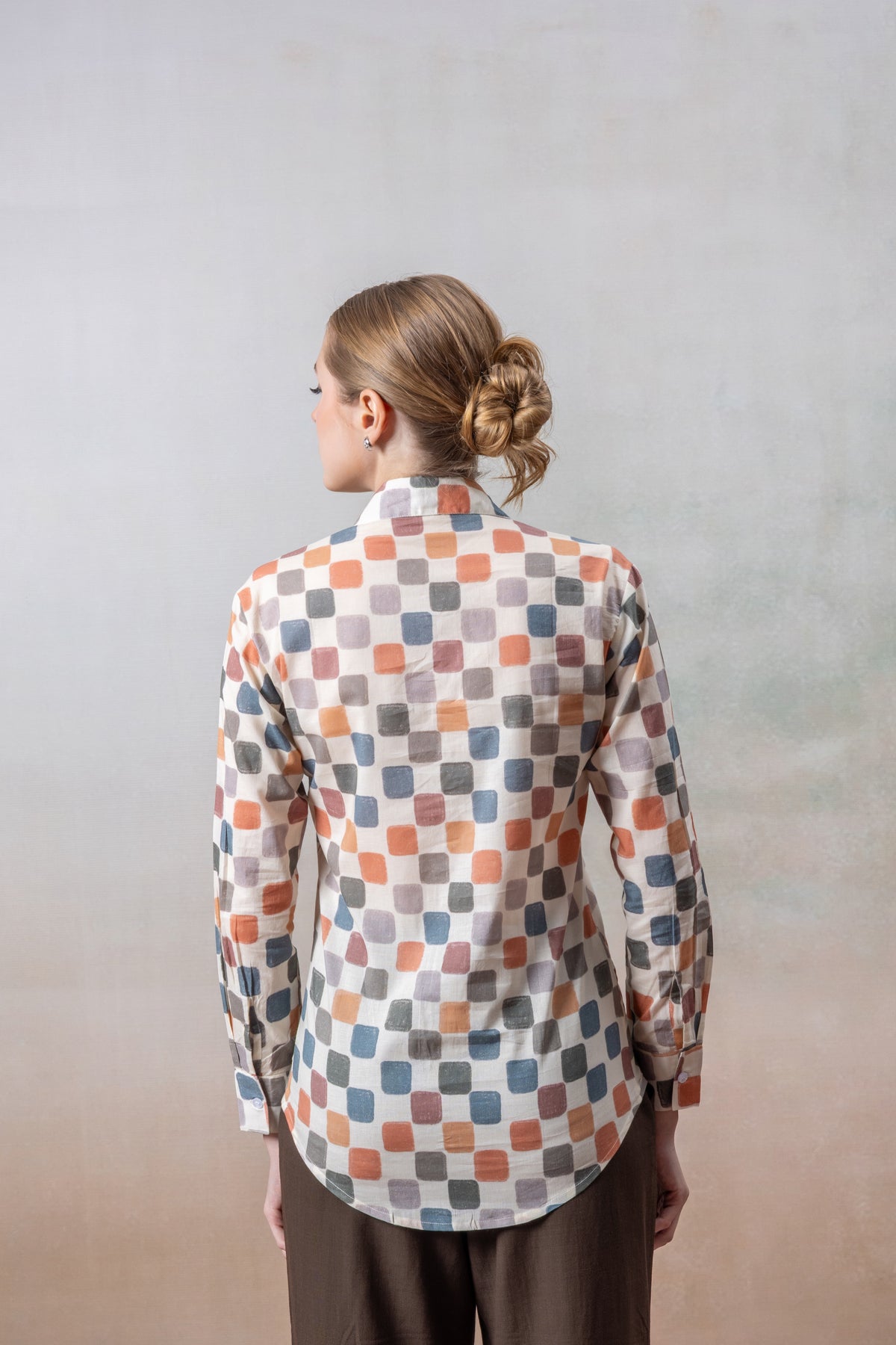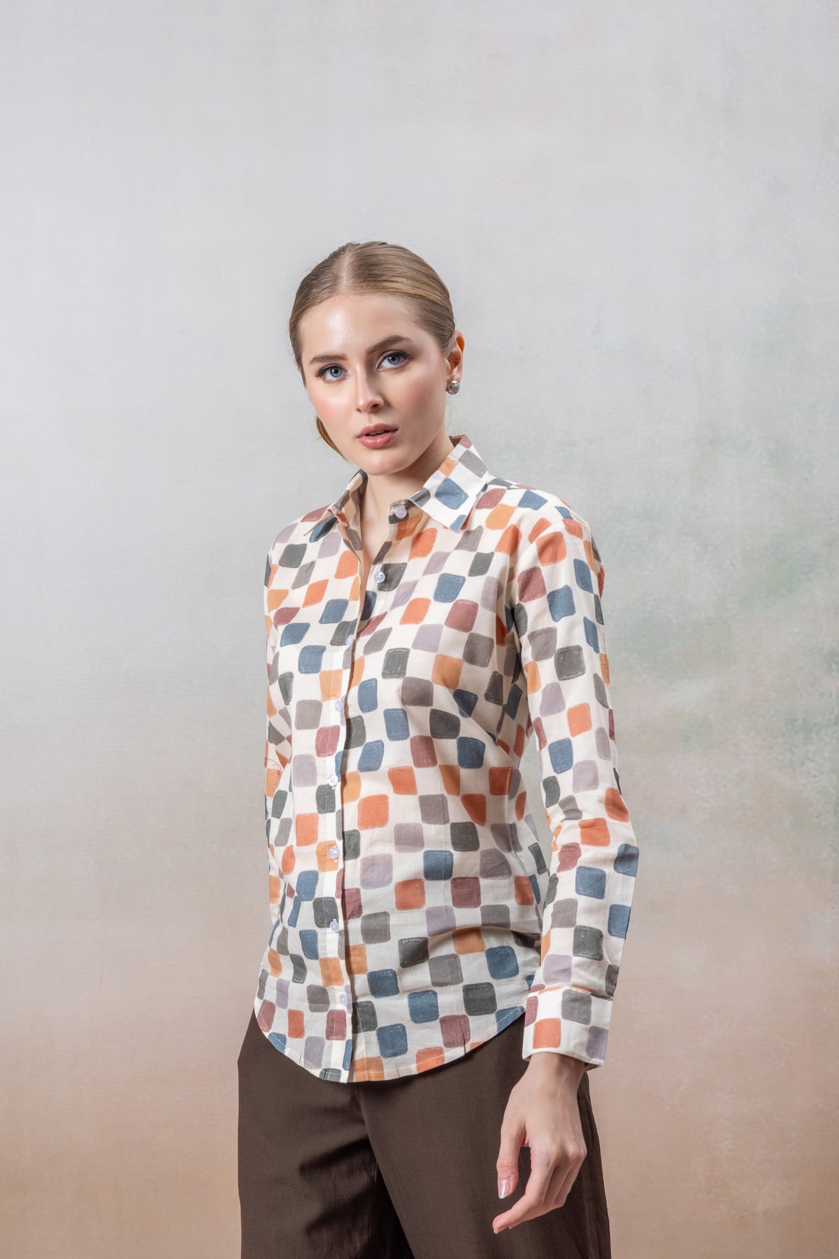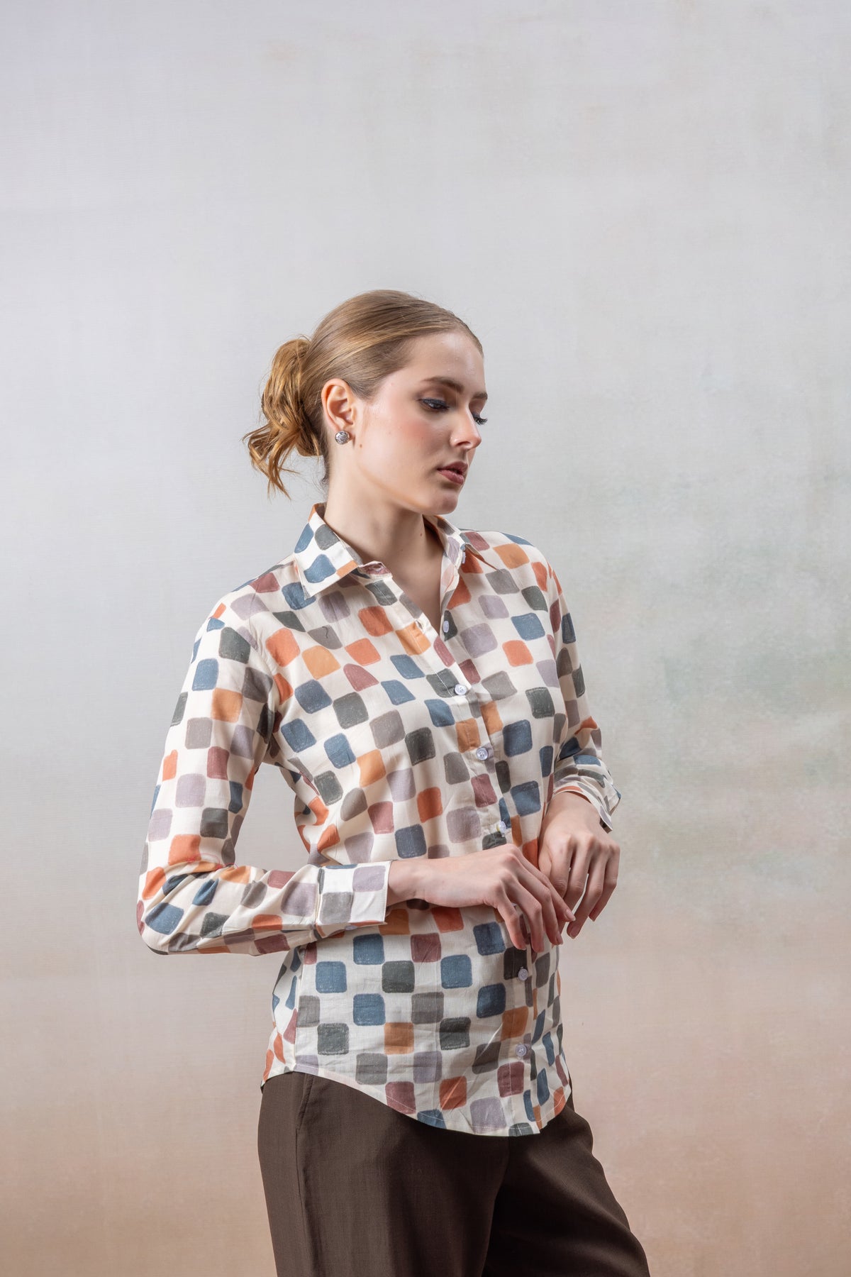 Add a pop of color to your wardrobe with this Multicolor Geometric Print Cotton Shirt, featuring soft pastel and earthy tones in a contemporary block pattern. Crafted from breathable cotton fabric, this shirt offers both comfort and effortless style — perfect for weekdays or relaxed weekend outings.