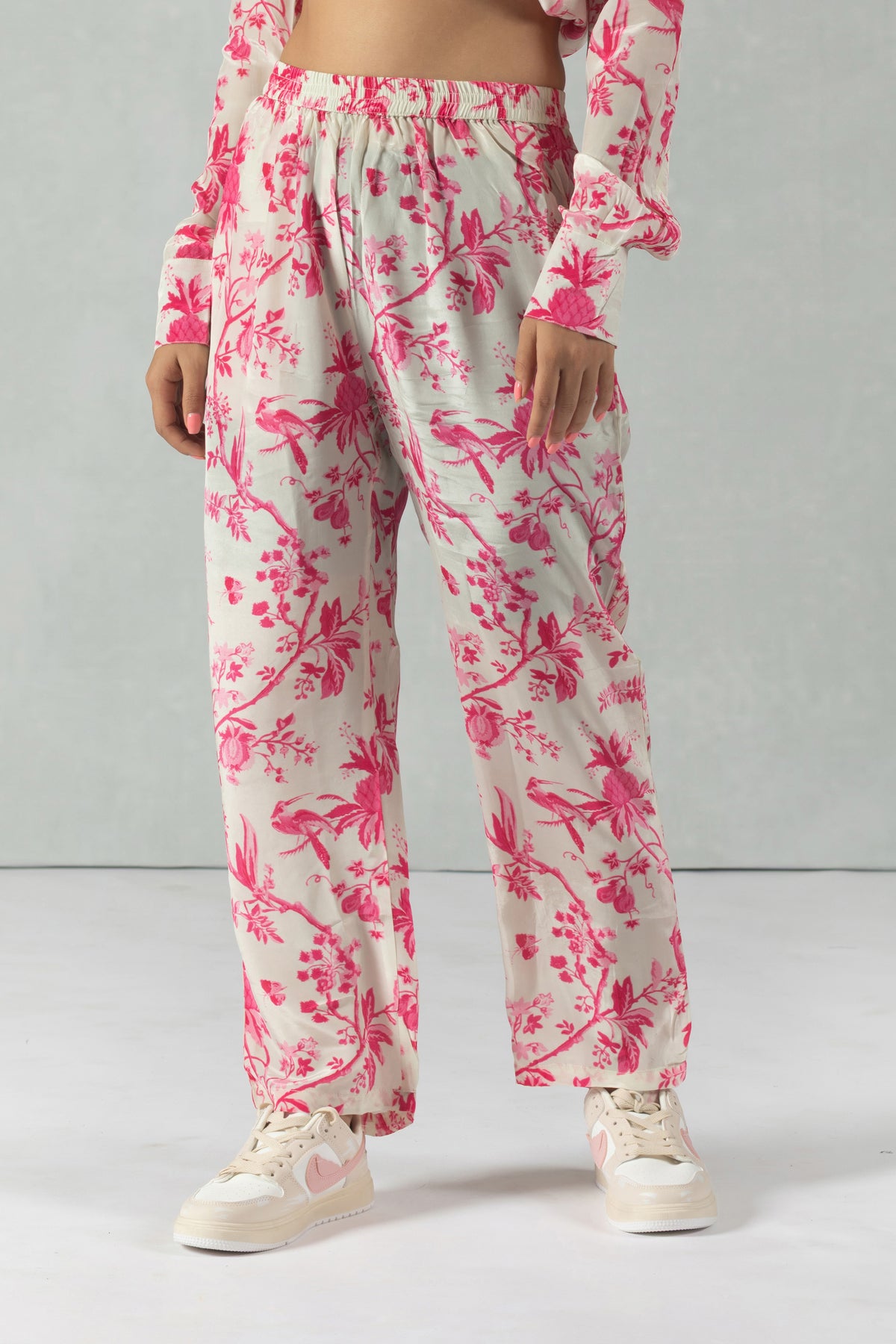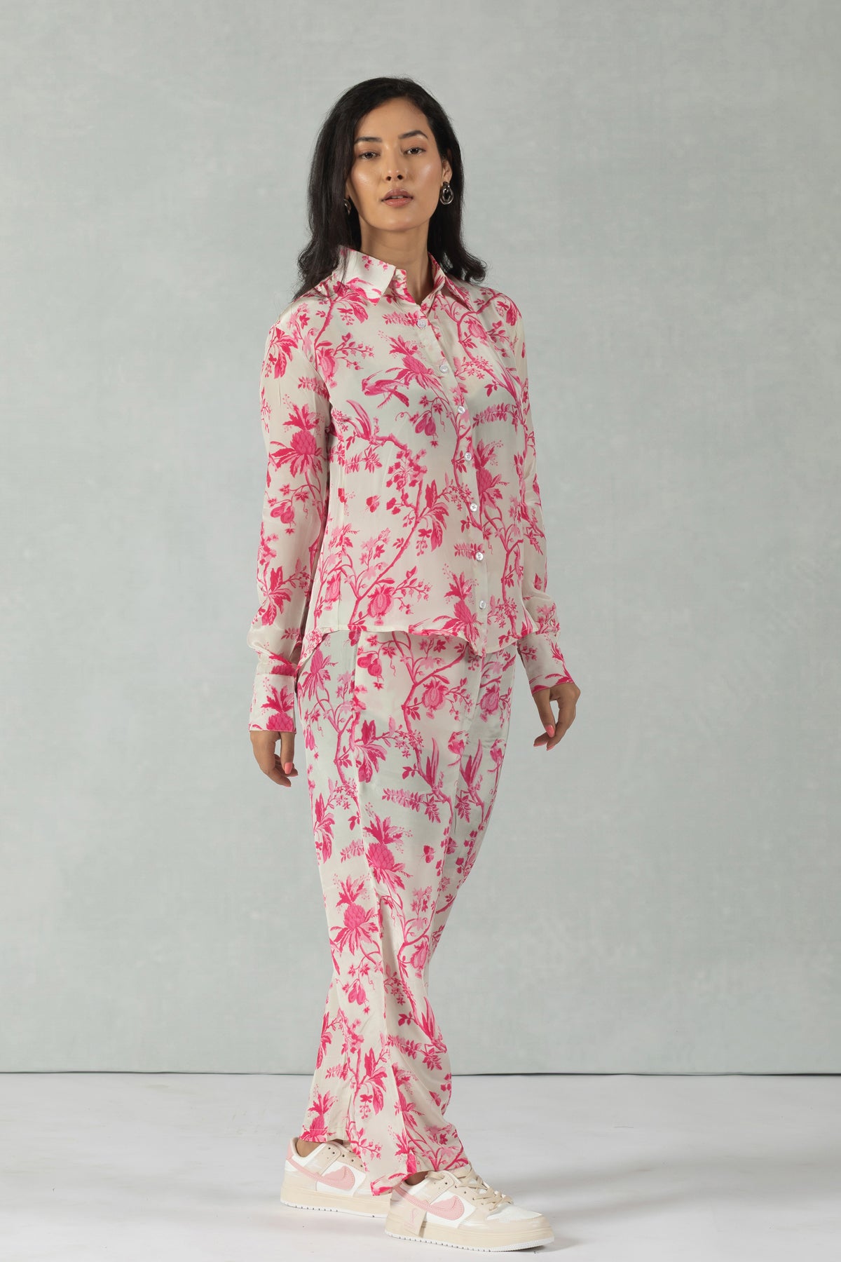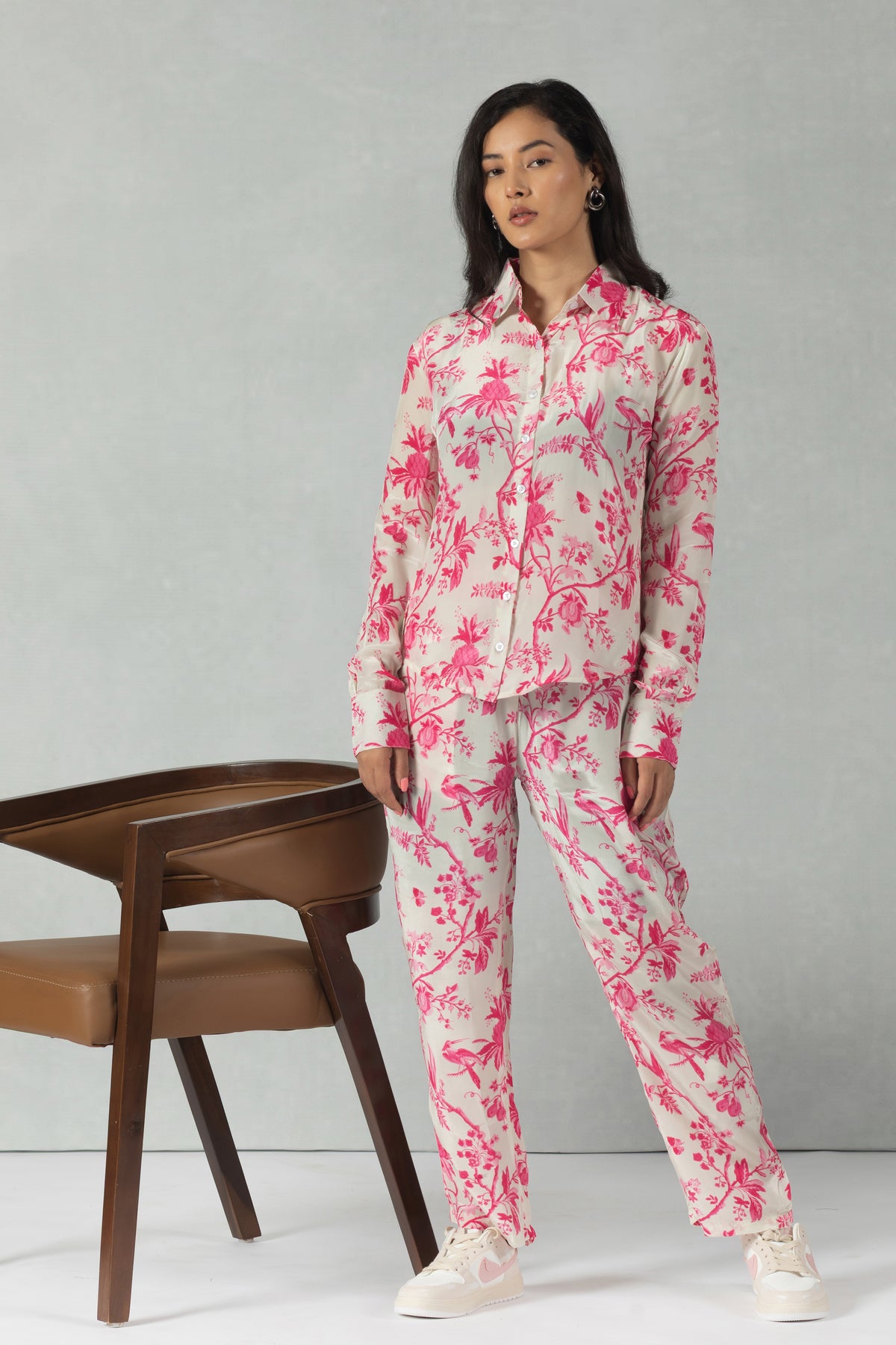 Pink Full Sleeves Floral Crepe Co-Ord Set
