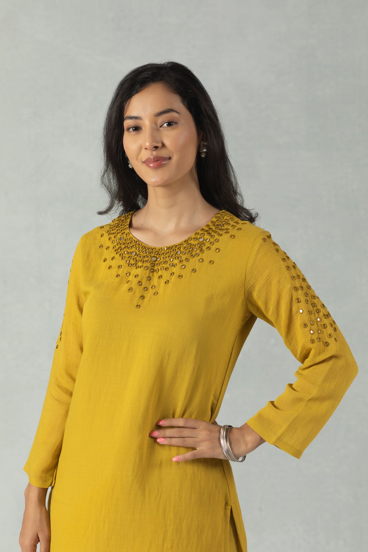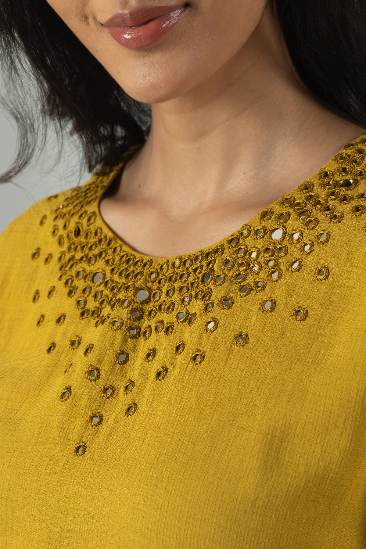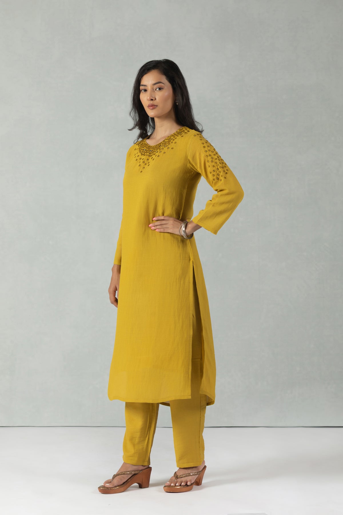 Marigold Round Neck Handwork Ethnic Co-Ord Set