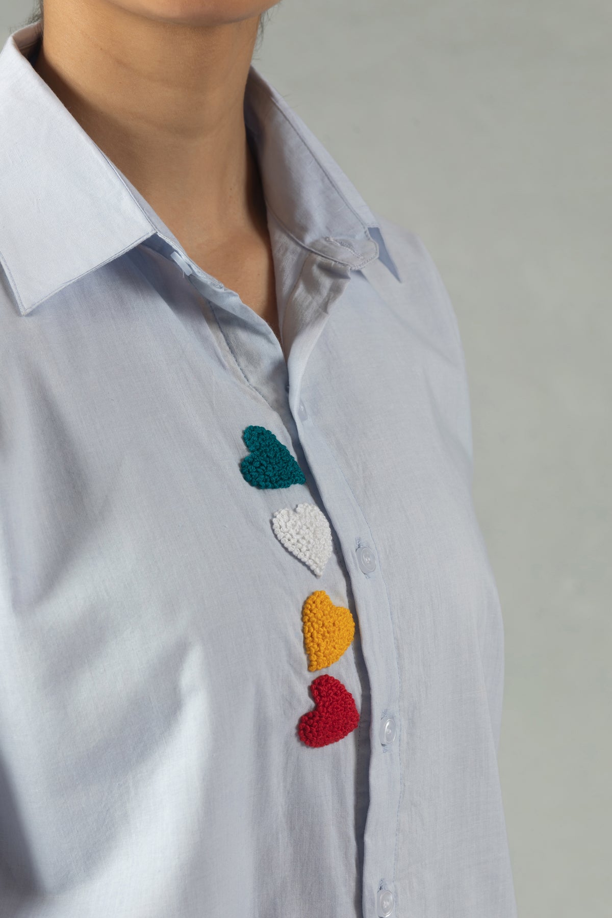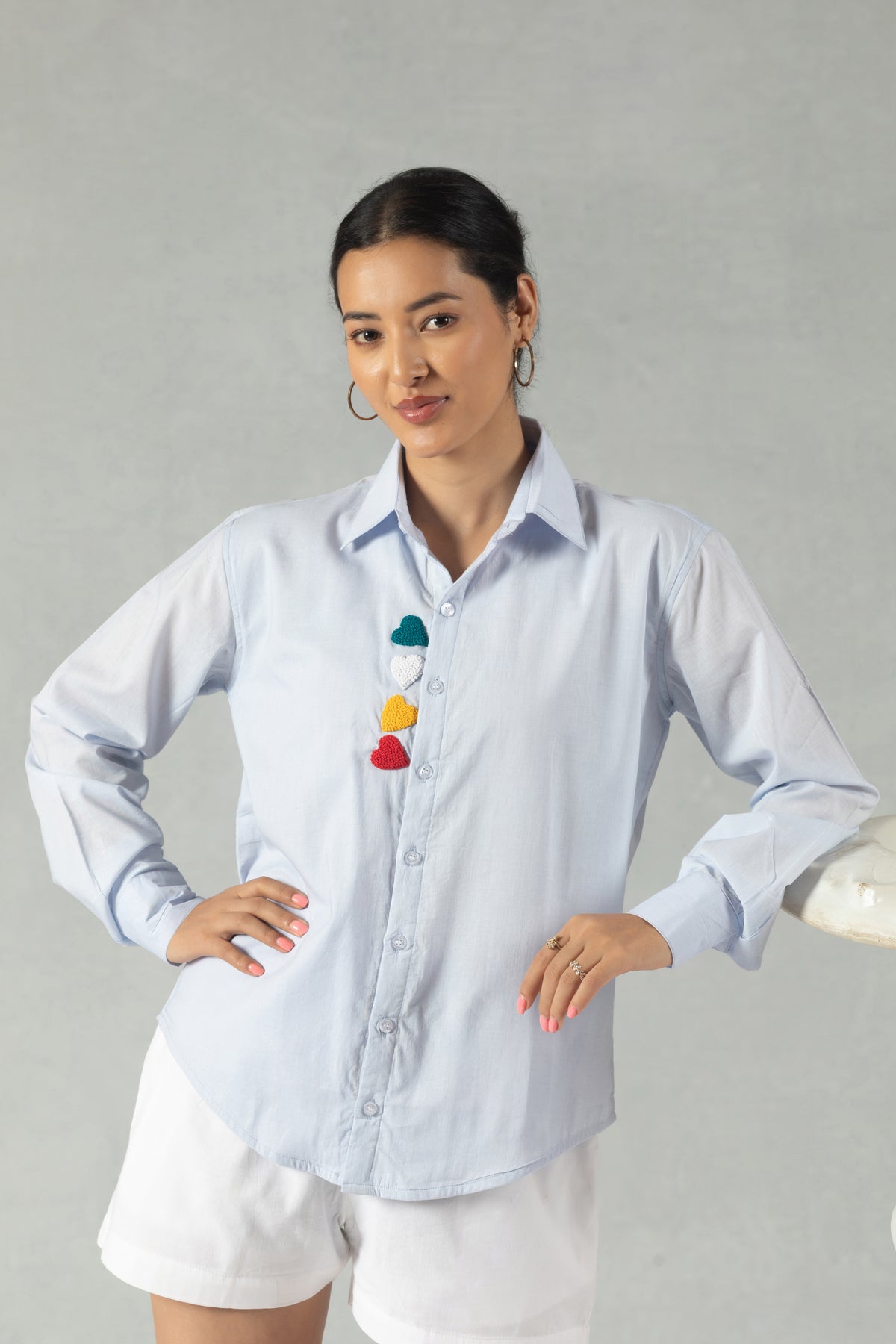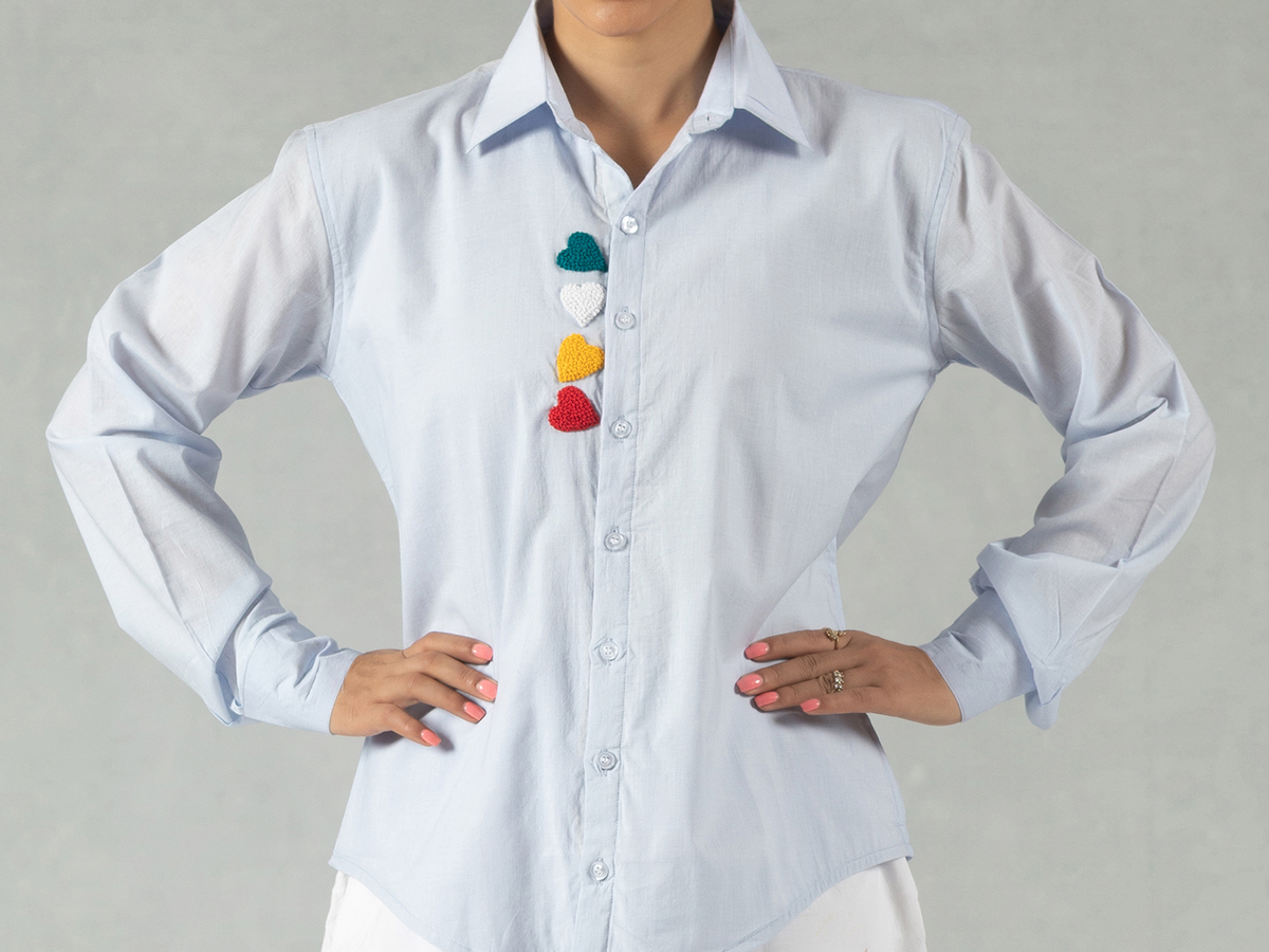 A statement piece for your casual wardrobe, this full-sleeve blue 100% pure cotton shirt features striking hand-embroidered heart accents. The lightweight, breathable 100% pure cotton keeps you cool and at ease all day long. Pairs easily with denims or shorts. Gentle hand wash recommended to preserve the embroidery.